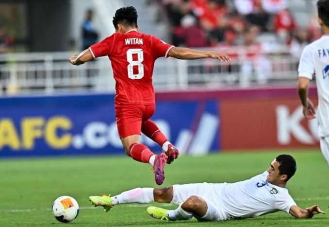 Di menit ke-23, Abduvohid Ne’matov sempat melanggar Witan Sulaeman di tepi kotak penalti. VAR kemudian mengecek pelanggaran itu, dan rupanya bukan di area kotak penalti.