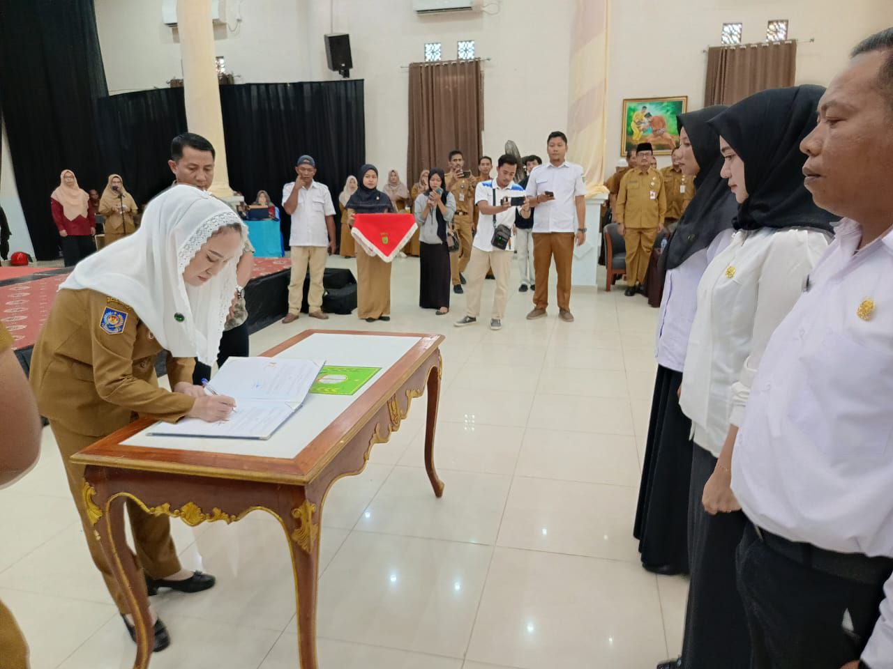 Acara penyerahan SK ini menjadi momen bersejarah bagi ratusan peserta dan keluarga mereka. Tampak sejumlah anak-anak dan kerabat datang membawa bingkisan dan bunga, menyambut bahagia orang tua mereka yang telah berhasil lolos seleksi ASN. Tangis haru dan senyum bahagia pun mewarnai prosesi penyerahan.