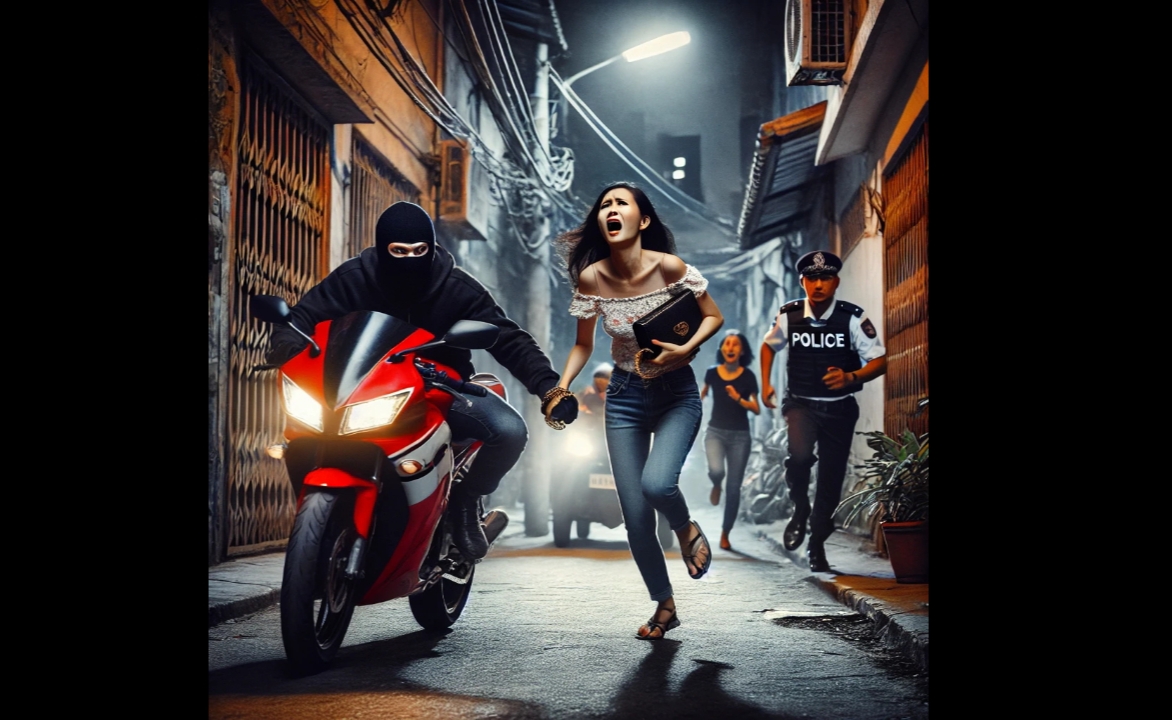 Tanpa diduga, dua orang ‘penyulap jalanan’ datang dengan mengendarai motor Honda Sonic merah hitam putih, lalu salah satu dari mereka, SA, langsung menarik gelang emas korban hingga putus. Dalam hitungan detik, mereka melesat kabur.