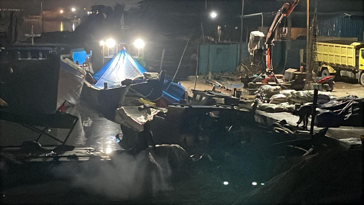Sekitar pukul 23.30 WIB, sebuah truk bermuatan penuh karung beras terlihat menurunkan puluhan karung ke empat kapal kayu yang telah bersandar. Proses bongkar muat berlangsung cepat dengan bantuan crane sederhana, seolah-olah sudah menjadi rutinitas.