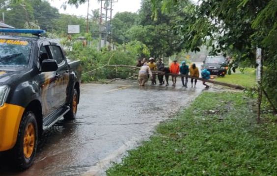 “Setelah kita mendapat informasi adanya pohon tumbang yang menghalangi jalan raya personel kita langsung meluncur ke lokasi dengan membawa peralatan untuk memotong pohon tersebut,” ujarnya.