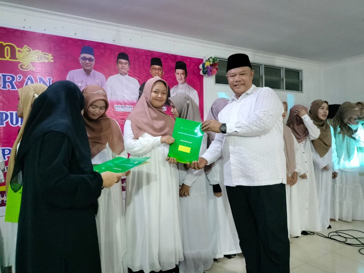Staf Ahli Gubernur Kepri Bidang Kesra Dr. H. Mahadi Rahman saat penutupan kegiatan Pembinaan Kaligrafi di Pusat Tahfiz Al Qur’an (PTA) Kepri di Desa Niur Permai Kecamatan Sugi Besar Kabupaten Karimun, Sabtu (14/9/2024) malam. (Foto: ist/Gudangberita)