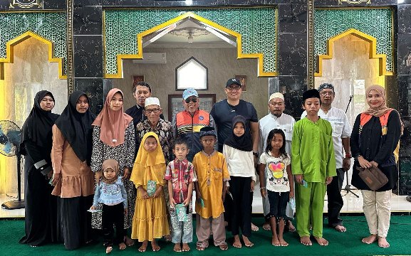 Sebanyak 38 orang tua dan 18 anak yatim piatu menjadi tujuan berbagi kali ini. Mereka juga menyerahkan bantuan untuk Masjid Al Mukhlisin, Bulang Kebam.