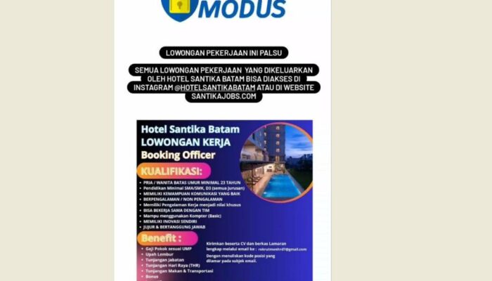 Hotel Santika Batam misalnya mengkonfirmasi ada lowongan kerja palsu yang mengatasnamakan pihak mereka baru-baru ini. Loker seperti ini banyak di share di media sosial.