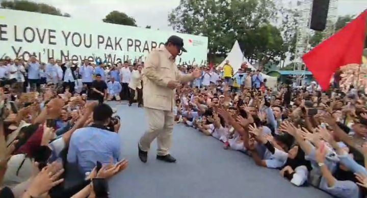 Prabowo kemudian mengeluarkan joget gemoy sambil melompat-lompat dan menjadi hiburan warga. Ia juga menyalami pendukungnya dibawah panggung sambil melempar baju safarinya. Massa pendukung di bawah stage pun cukup terhibur dengan aksi prabowo bak sebuah konser musik itu.