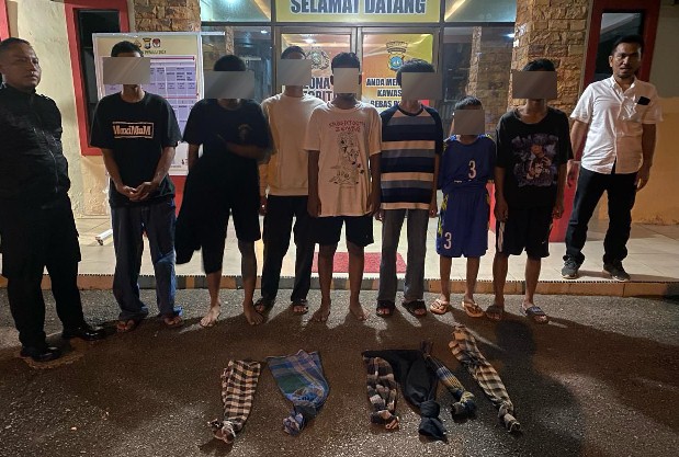 “Kami amankan 7 orang anak anak yang statusnya masih pelajar dan langsung digelandang ke mapolsek bersama barang bukti,” terangnya.