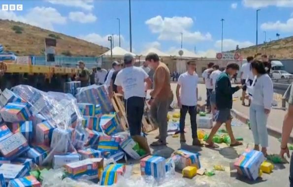 BBC melaporkan ada tujuh truk bantuan yang dirusak oleh demonstran Israel ini. Bahan makanan untuk Gaza telah mereka rusak dan berkarung-karung gandum mereka rusak. Mereka melemparkan bantuan ke jalanan setempat.