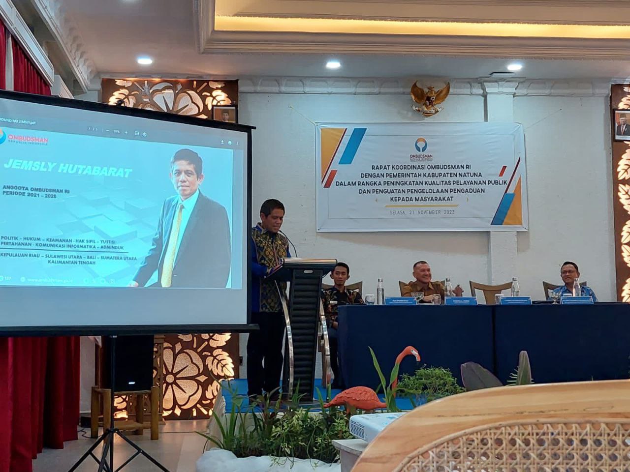 Pimpinan Ombudsman RI, Jemsly Hutabarat berharap Pemkab Natuna terus melakukan perbaikan hingga dapat memberikan pelayanan prima kepada masyarakat.