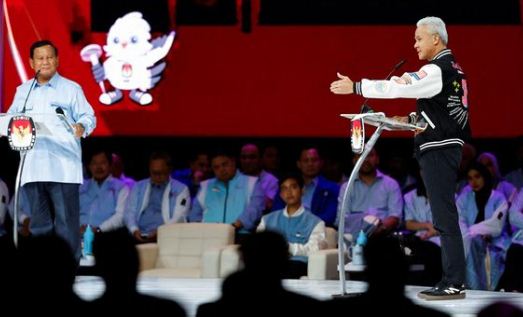 Perdebatan antara capres Prabowo Subianto dan Ganjar Pranowo dalam debat kelima Pilpres 2024 memicu pertanyaan tentang apa beda stunting dan gizi buruk. (REUTERS/WILLY KURNIAWAN)