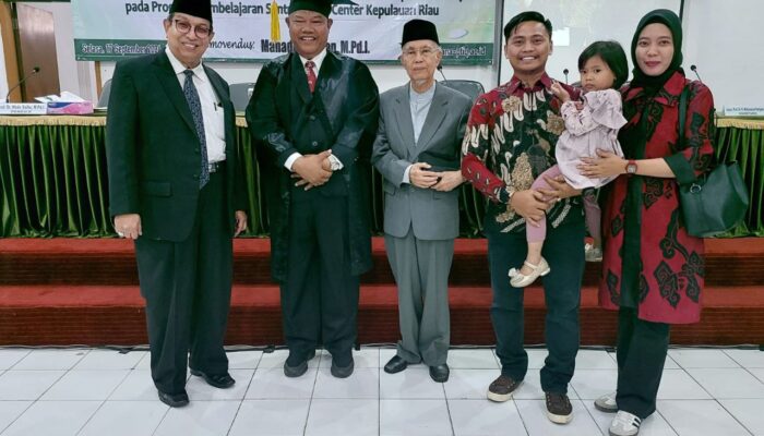 “Alhamdulillah, hari ini saya dapat mempertahankan disertasi saya. Terima kasih kepada pembimbing, para dosen, guru, orangtua, istri dan anak saya, Gubernur Kepri Bapak Ansar Ahmad, kerabat dan keluarga, serta semua sahabat yang telah mendukung dan mendoakan,” ungkap Mahadi yang juga Direktur Qur’an Center Provinsi Kepulauan Riau tersebut.