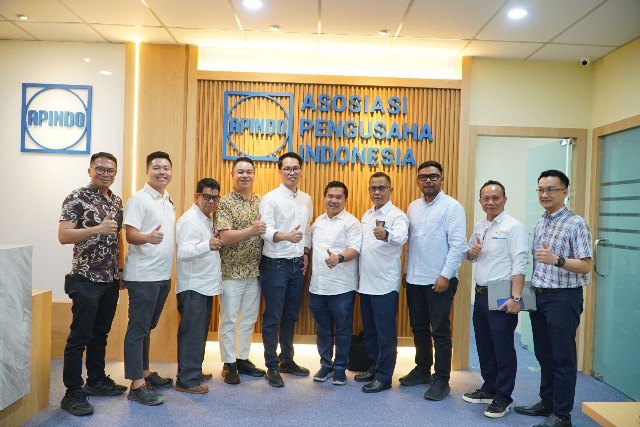 Sekretaris Perusahaan PT PLN Batam, Zulhamdi bersama Manager Komunikasi dan TJSL Bukti Panggabean disambut langsung oleh Stanly Rocky Ketua DPP Apindo Kepulauan Riau dan Rafki Rasyd DPK Apindo Kota Batam.