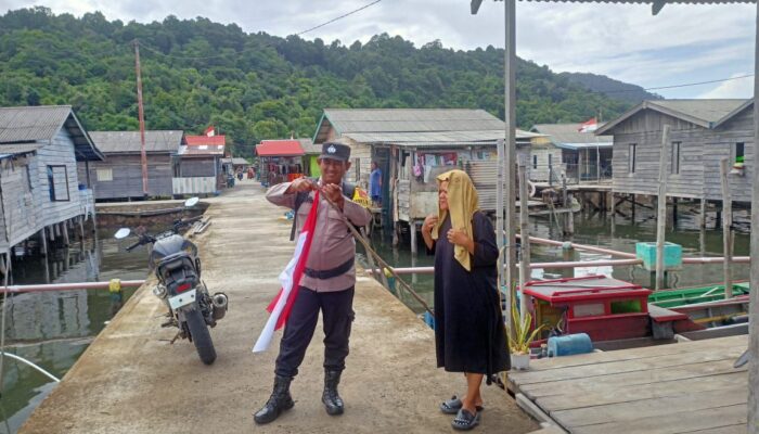 Gudangberita.co.id, Anambas – Jelang HUT ke-79 Kemerdekaan Republik Indonesia, Bhabinkamtibmas Desa Kuala Maras, Bripka Mauliyaldi membagikan Bendera Merah Putih kepada warga di Desa Kuala Maras, Kecamatan Jemaja Timur, Kabupaten Kepulauan Anambas, Senin (5/8/2024).
