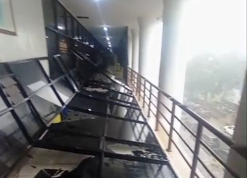 “Pas aktivitas kantor, dihantam angin kencang, tumbang. Ada orang juga di sekitar tempat tumbangnya jendela panjang partisi itu,” ungkap Avita.