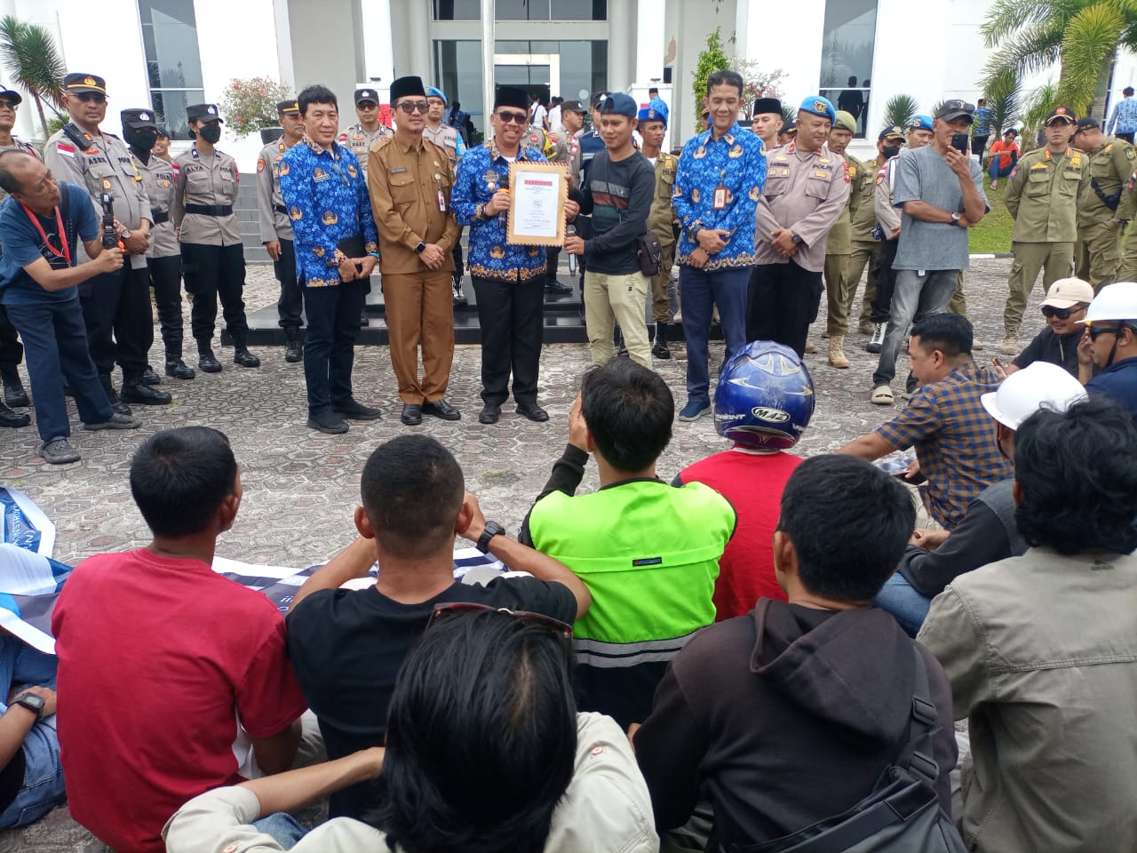 Gudangberita.co.id, Natuna – Ratusan kontraktor, pengawas, dan tukang bangunan mendatangi Kantor Bupati Natuna guna menuntut kejelasan pembayaran utang proyek tahun anggaran 2024. Aksi damai ini dipicu oleh keterlambatan pembayaran yang dinilai merugikan pihak kontraktor.
