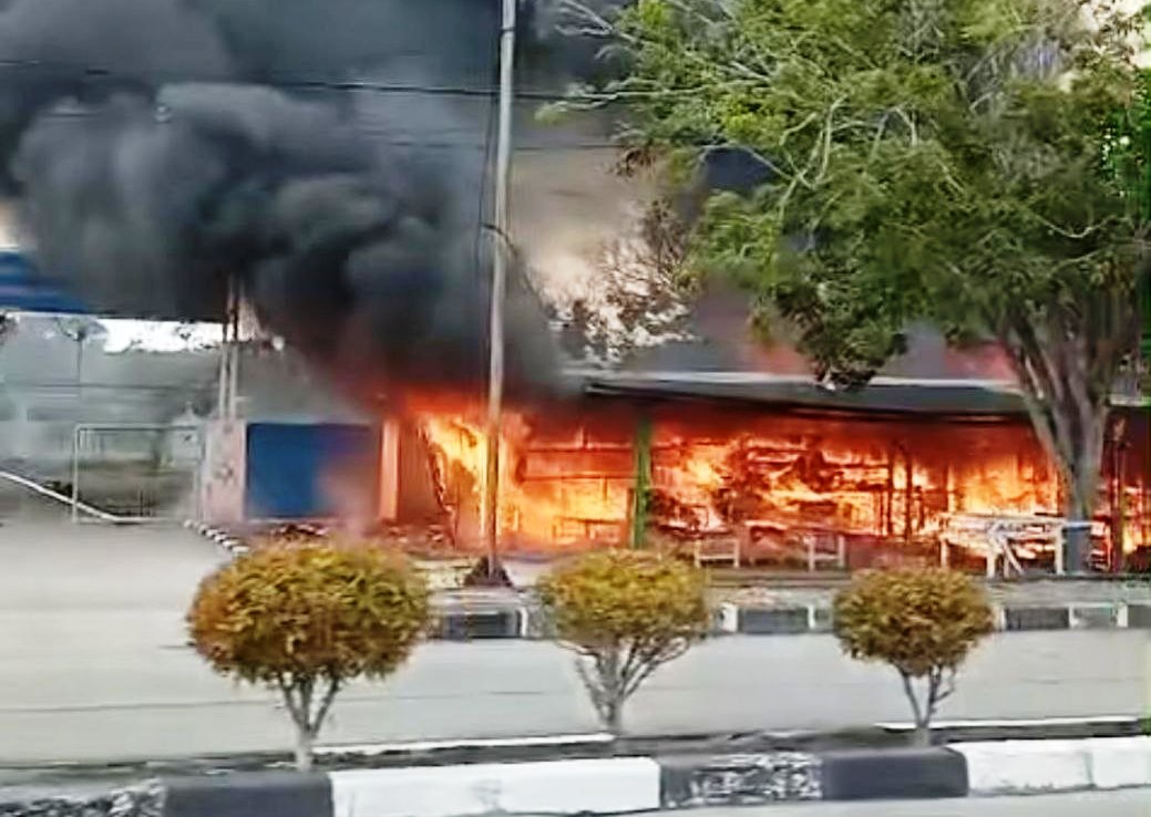 . Diduga akibat kebocoran tabung gas, tiga unit warung yang berlokasi tepat di depan Menara Suar Tanjung Rambut DSI 873 ludes terbakar hingga rata dengan tanah pada Kamis (30/4/2026) sore.