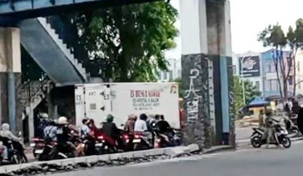 Warga pilih nekat panjat median jalan usai U Turn, Sei Panas ditutup.